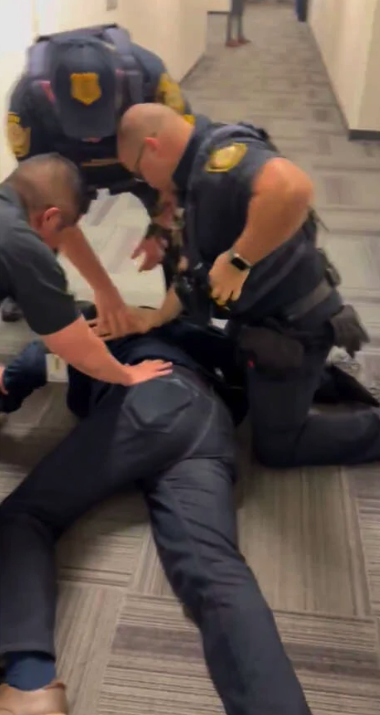 El Senador Padilla, un servidor público respetado, graduado del M.I.T. y el primer latino en representar a California en el Senado de los Estados Unidos, fue detenido violentamente a plena vista del público y de la prensa mientras intentaba cuestionar a la Secretaria Noem sobre las tácticas de aplicación de las leyes migratorias. A pesar de haberse identificado claramente en múltiples ocasiones, evidencia en video muestra al Senador Padilla siendo empujado al suelo, esposado y removido a la fuerza.