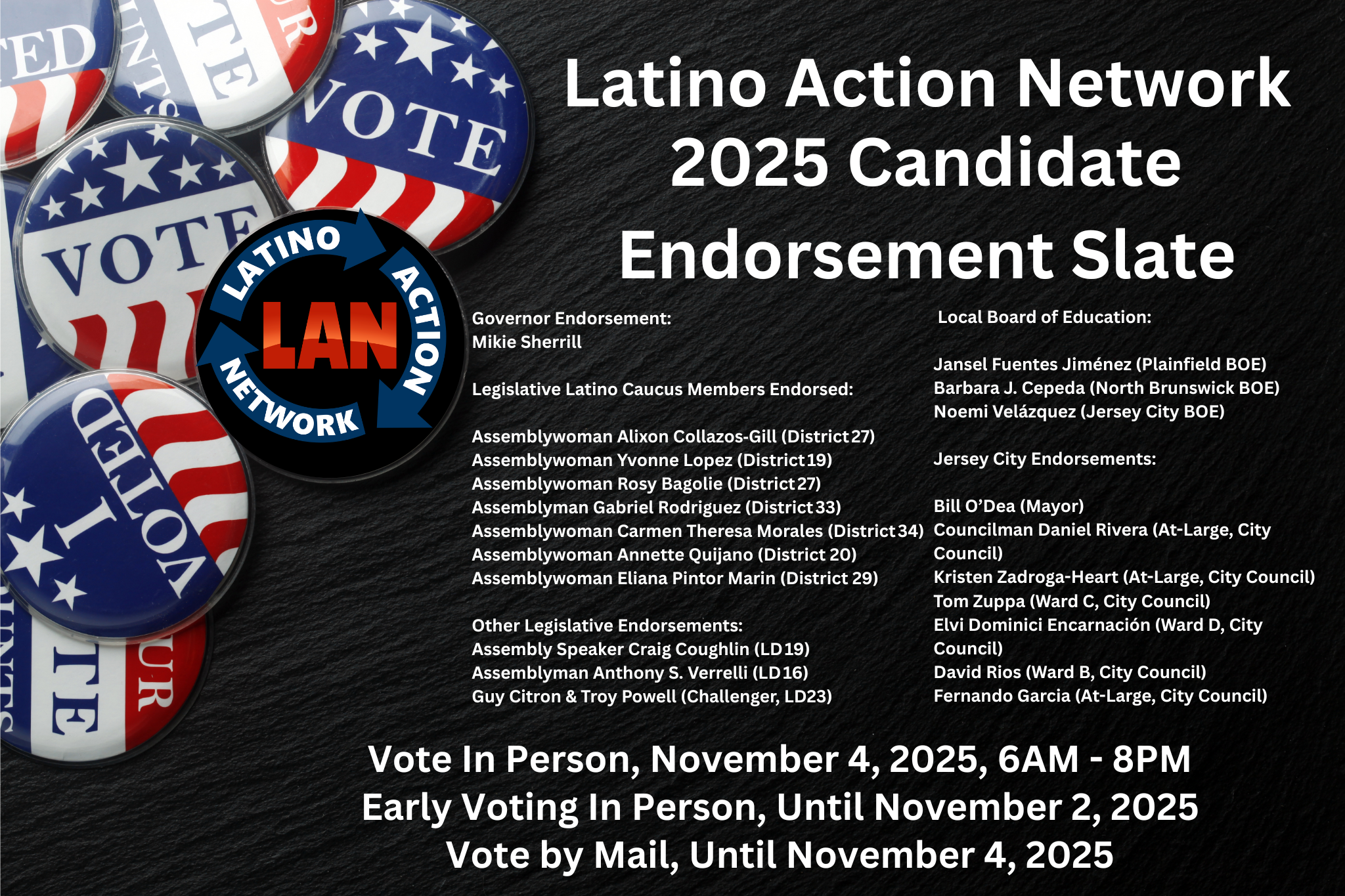 The Latino Action Network encourages voters to make their voices heard in the upcoming elections and support candidates who will advance policies that benefit Latino communities and New Jersey as a whole.